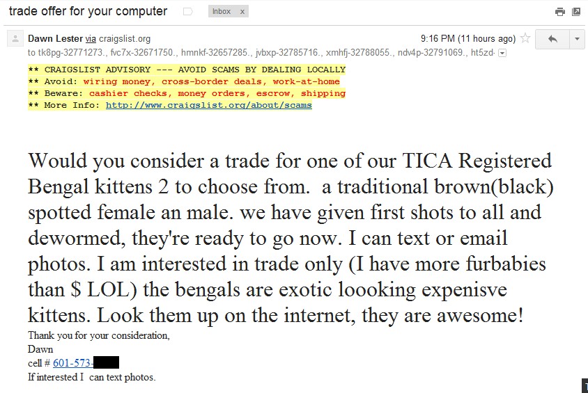Yeah, and "swinging by my place to look/pickup item" is also a big effing no no. Does that bother anyone else when someone wants to come pick it up? I'll meet them somewhere close, but not at my house.