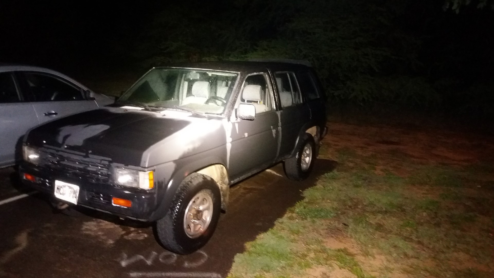 Sorry pics suck at night... I take possession of it next weekend when he leaves the island. It's gonna get a bath in every Meguires product there is, and I'm already looking for some interior bits that are missing. The good news is that somebody on this island is parting out a Pathfinder practically weekly.