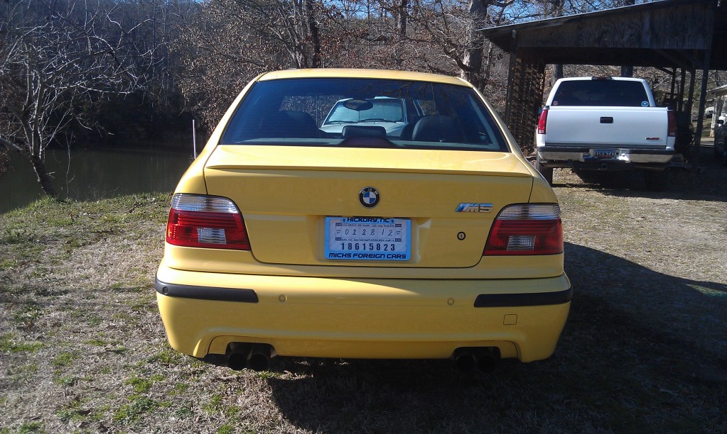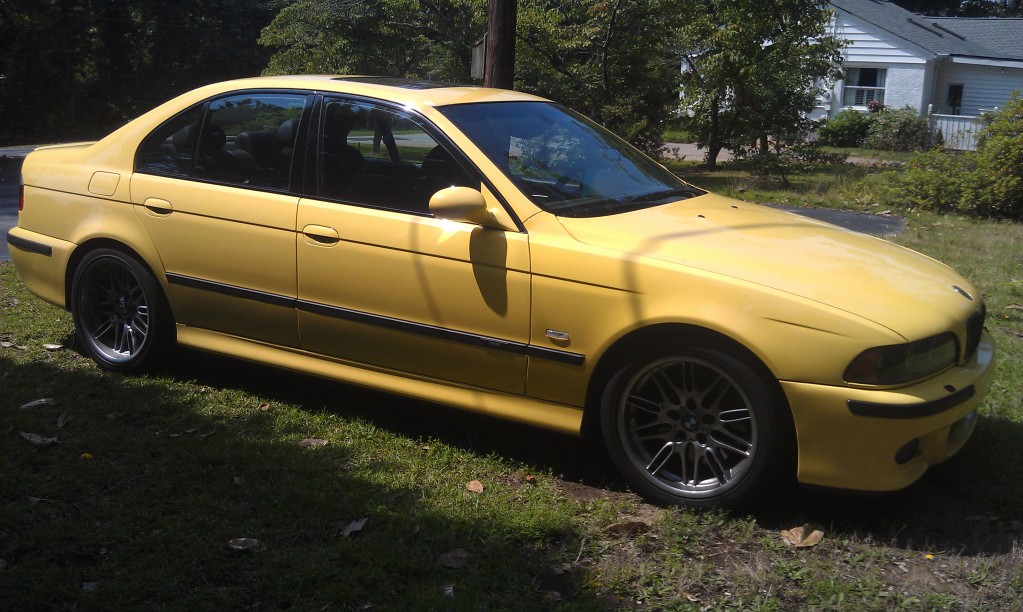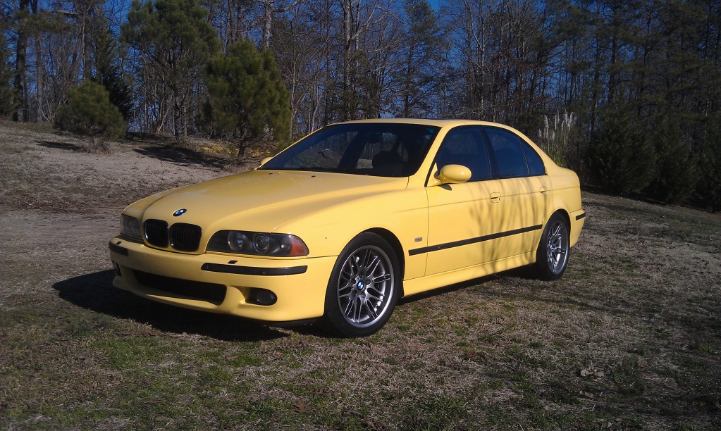 Been quite awhile since I've been a regular on here so I thought I would make a return... As most of you might remember I was in a pretty bad car accident in my Audi last November. I have since made pretty much a full recovery and feel about as well as can be expected with gaining 3 lbs of Titanium in my legs. Had to find a replacement vehicle to drive and ended up finding one just after I was able to walk again. Ended up going with a 2001 BMW M5 in Dakar Yellow (one of 5 built in the World). It definitely hauls ***... But enough talk here are some pics: