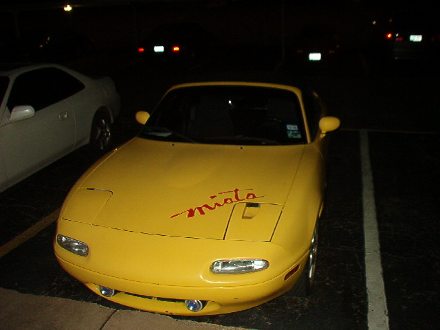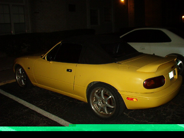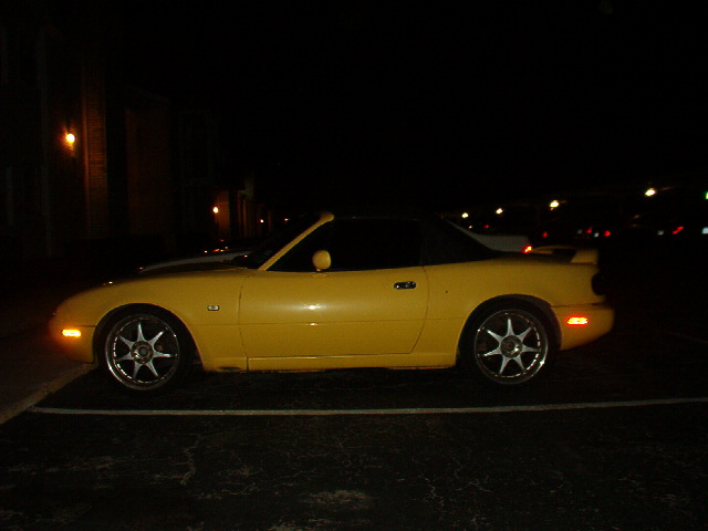 The wing isn't as big as it looks in the picts. And the car has the same stance as the white one posted. I like the stance with those rims. I think it sets it off. The car was already like this when I bought it. I probably wouldn't of put the miata sticker on the hood. But it isn't bad. But I love the car.