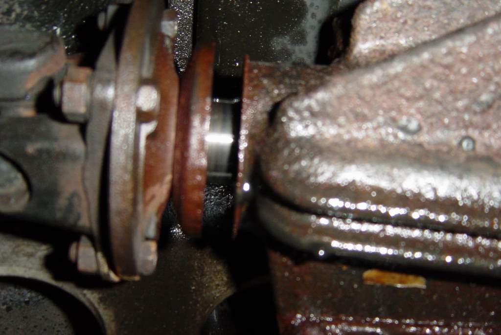 Pics are supposed to show the large sharp chunks missing from the inside edge of the turbine blades. This area was *clean* and dry before the install. There is significant radial play in both ends of the shaft, about 1/4 inch. I believe some object attempted to go thru the turbine, chewed up the blades, F'ed up the bearings and the oil rings. If I plug the oil drain fitting with my finger and blow on the pressure hose, I can easily blow thru both ends of the turbo.