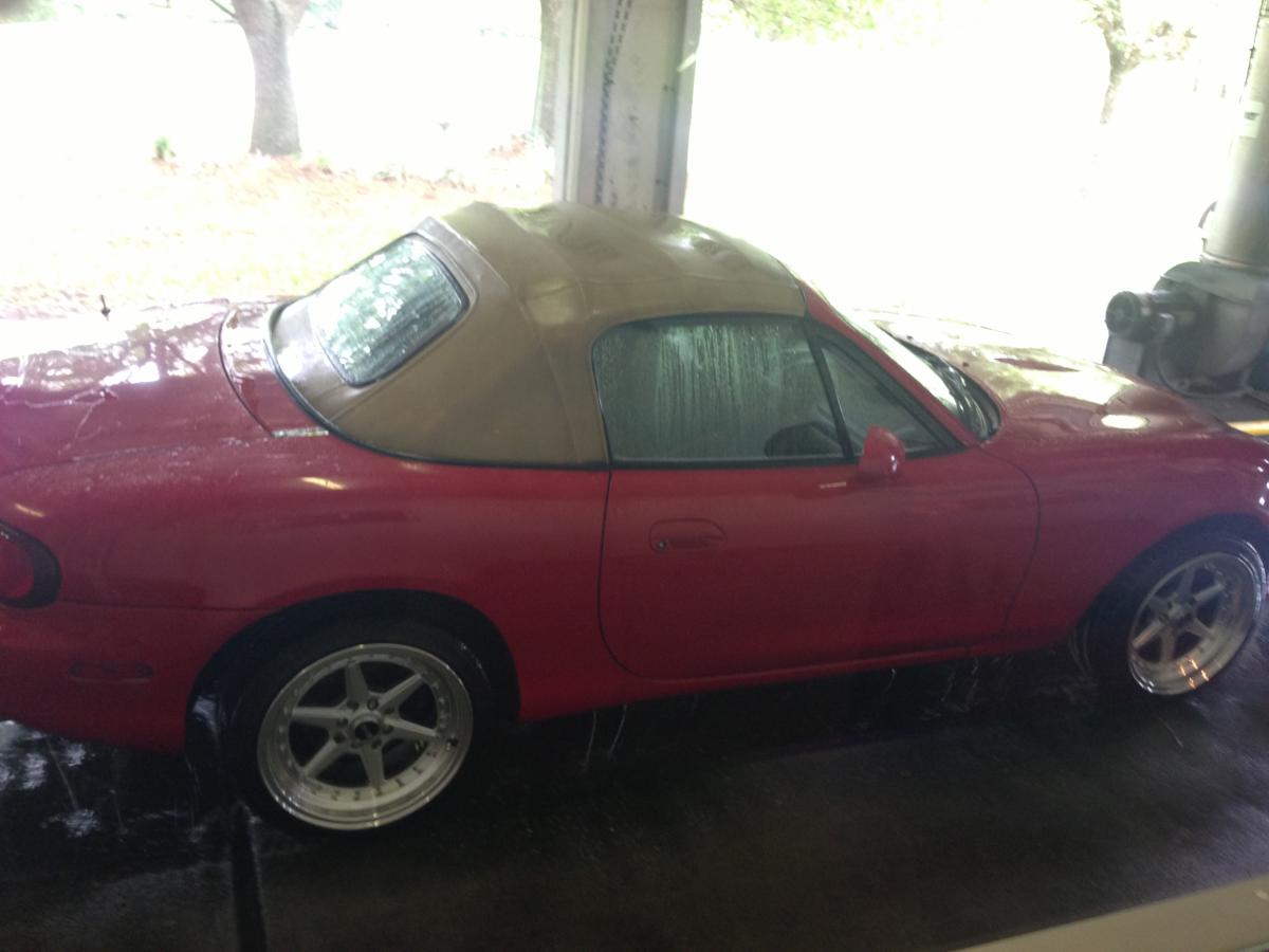 In keeping with the Miata theme, we have the FrankenMiata. '99 with an '04 MSM drivetrain, megasquirt, tokico and tein. Y'all probably know about this one already..