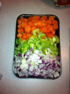 This is a package, from a Whole Foods supermarket in Fairfax, Virginia, of cleaned and pre-cut vegetable for making soup. Packages such as these are common now in supermarkets – not only in Whole Foods, but also in stores such as Giant and Safeway.