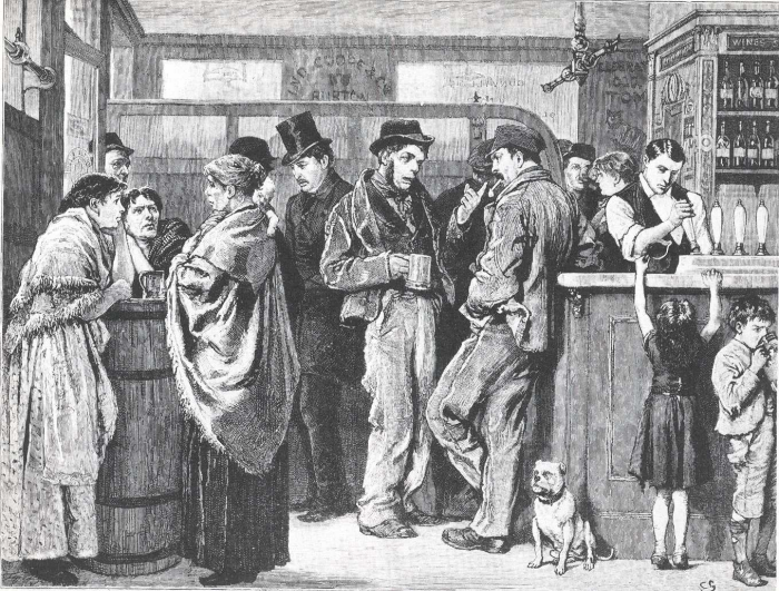 Gin palace, London.The temperance movement — a social movement that opposed the consumption of alcohol — was an early supporter of this new beverage called “water.” There was a terrible epidemic of alcoholism at the time, both in London and in the United States. Alcoholism was destroying families, but until there was clean, safe drinking water, the temperance movement didn’t have an alternative to offer people in place of booze. Coffee and tea were expense, milk was for babies and many people drank alcoholic beverages simply by default.