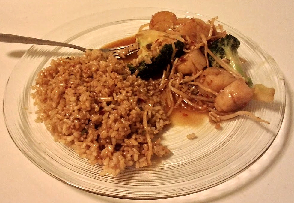 And I'm not kidding about this being a Chinese Takeout diet. With the exception of those weekend evenings spent up in the mountains of late, my dinners have been consisting of nothing but dishes from Precious, such as scallops with broccoli & bean sprouts in hot garlic sauce, with a generous pile of steamed brown rice: