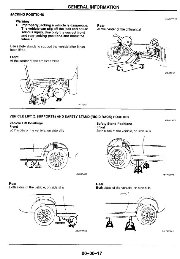 As to technique, I usually follow the instructions in the Mazda shop manual and jack the car from the front and rear, rather than from the sides.