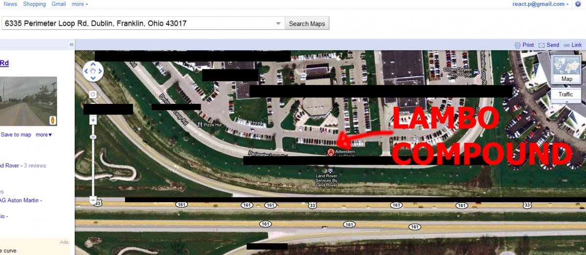 Based on your map and the proximity to the Pizza Hut, I'm beginning to wonder if Pizza Hut has been harboring said lambo all these years. We should begin to question whether to trust Pizza Hut. Pizza Hut does have a history of hiding things in plain sight - for example, cheese and pepporoni in the crust.