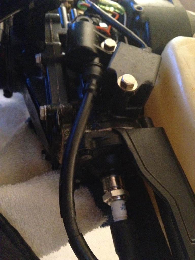 Also, when I was having problems getting it to start before I could adjust the carb, it ran pig rich and flooded out the plug. Wet plug= no spark. To fix it, I'd pull the plug, dry it off with a rag and heat it with a lighter. That heat made it warm enough to evaporate the extra gas until it fired. Then I could adjust the mixture to where it ran right.