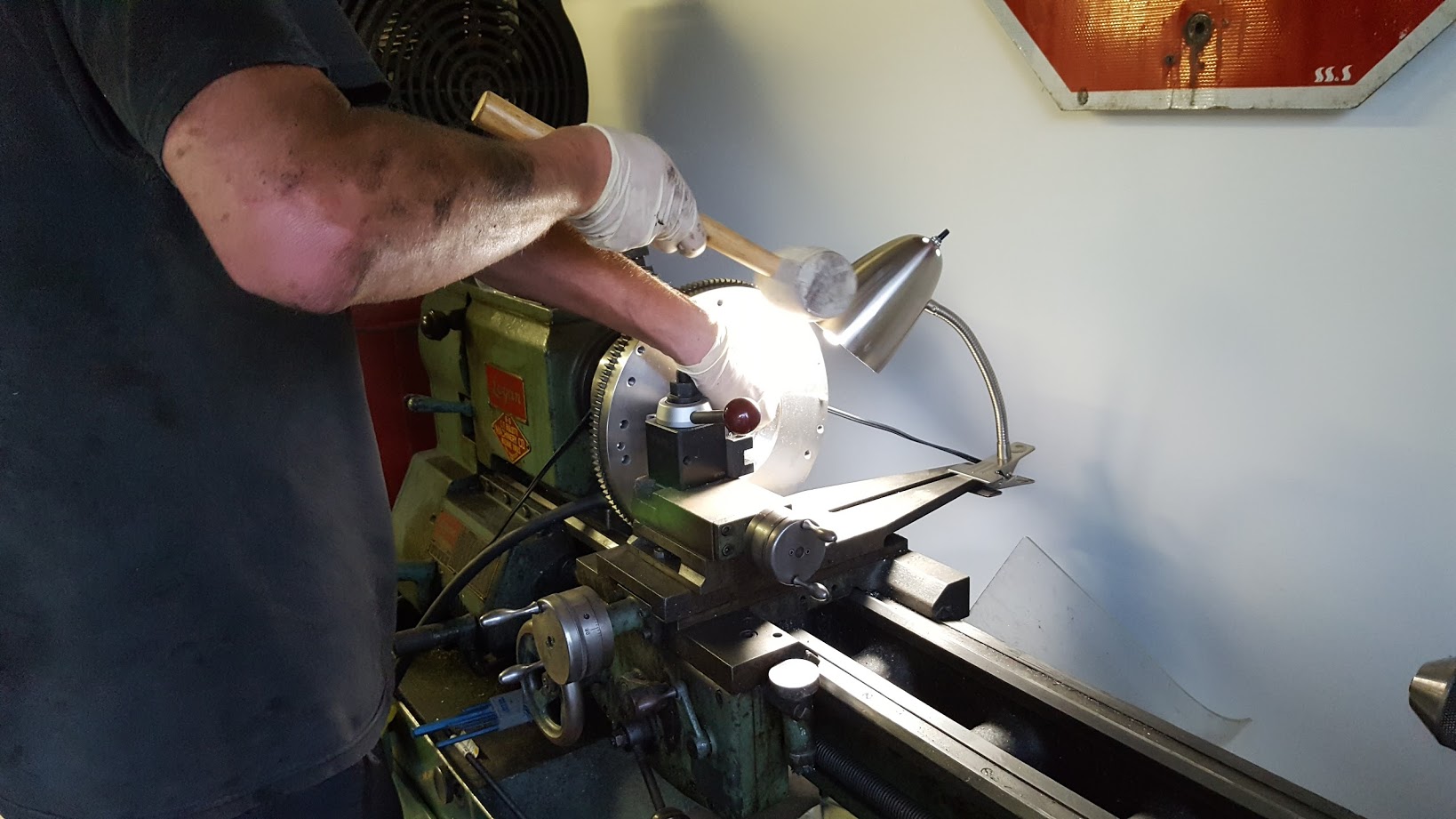 And while Eric and I hid outside the garage and took pictures, Gesso and his giant forged tungsten ********* stood in front of the ******* wheel of death and started cutting.