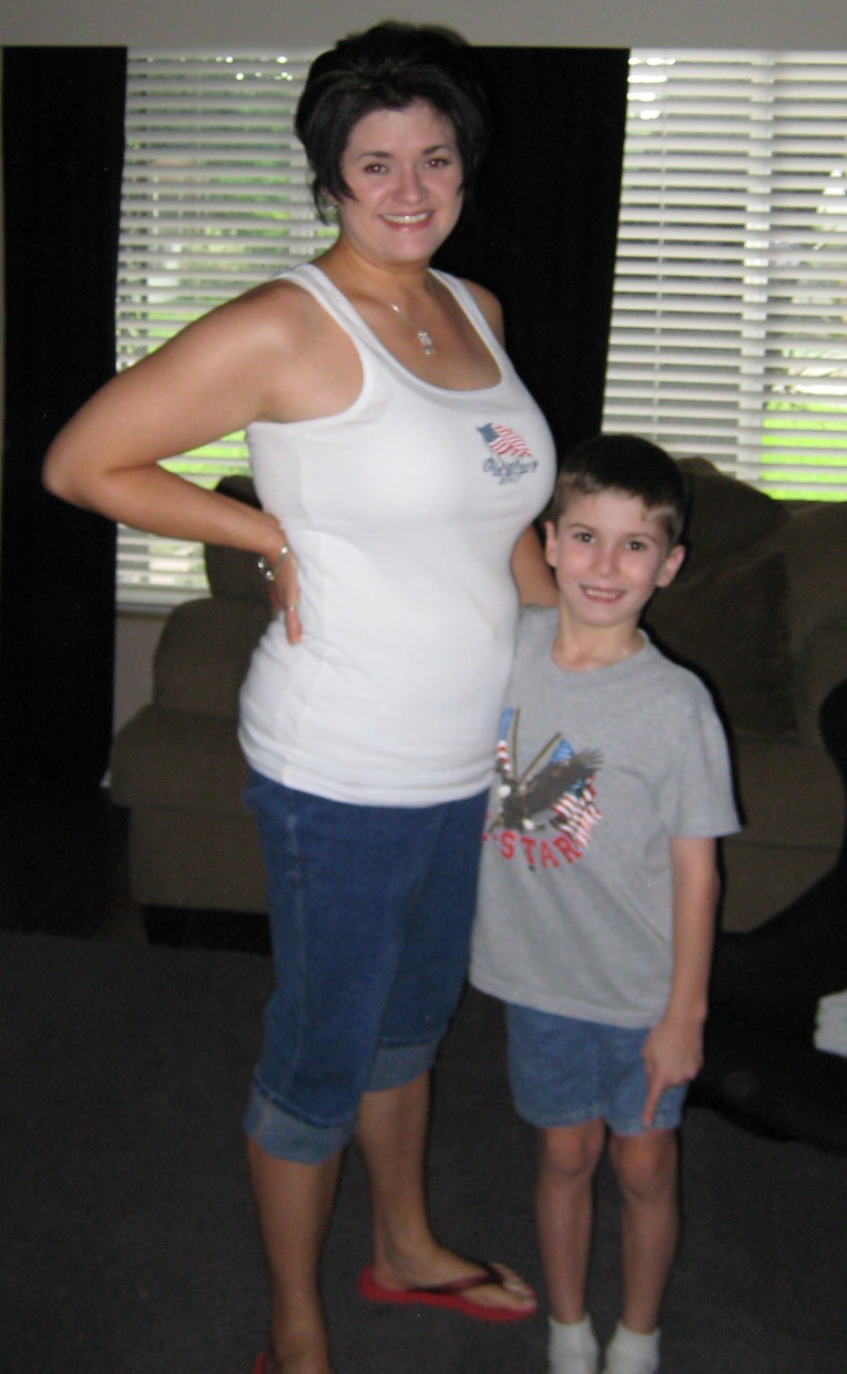 My son was born Pierre-Robin Syndrome. For those that may not know it is a cranial facial disorder that affects the lower jaw line, and is usually combined with some sort of cleff lip issue, breathing issues due to the small lower jaw, and heart murmer. My son had a cleff palate, he was only born with the soft palate not hard. back in 1999, he was the youngest child ever to have mandibular distraction, 5wks old. Basically, they cut his lower jaw bone in half, attached 4 pins to fore and to aft connected by and adjustment rod. They stretched his lower jaw 1.5mm three times a day. They did this to a maximum of 23mm, almost an inch. All while he was sedated and unconscious in the ICU. Basically, living off the vent. them he got a trach, then a G-tube....Poor kid has had 7 major surgeries before he was 2. However, the doctors did a wonderful job. We are blessed to live in thisday and age of modern technology. Here is a scanned copy of the pictures from the magazine, Tender Loving Care, that he was featured in. There is a post OP and Pre-OP. The picture of me holding him is when he had his NG tube and the distraction pins still in his jaw. The other pic is of momma and morgan this July 4th.
