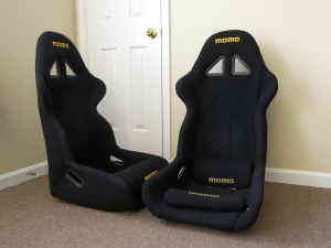 Today was my day off, so I was whoring for parts on craigslist as usual when I found two momo seats w/ cushions for 100/each. Bingo.