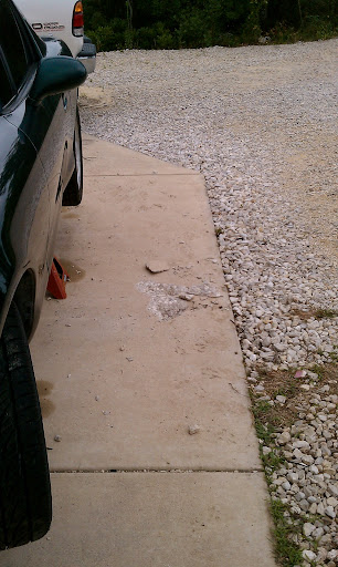 Here is the damage to the driveway with a car key in the picture for scale