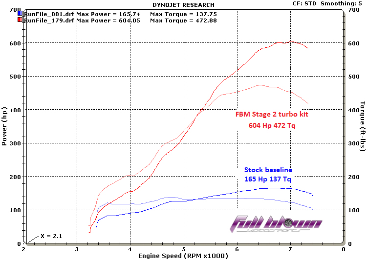 And on the power curve, he's making more torque than the stock peak before 3500 rpm.