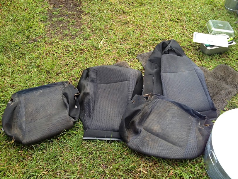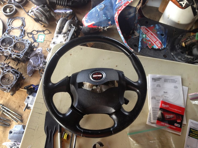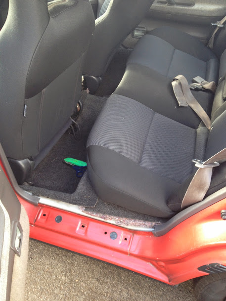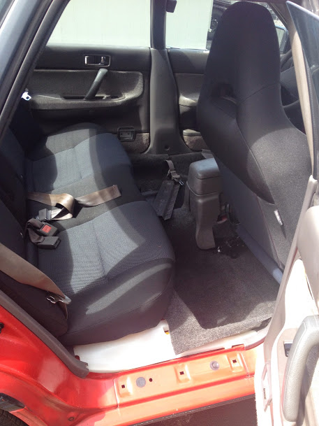 stock seats were way gone so I picked up some 04 WRX front and back seats with carpet and steering wheel for $300!