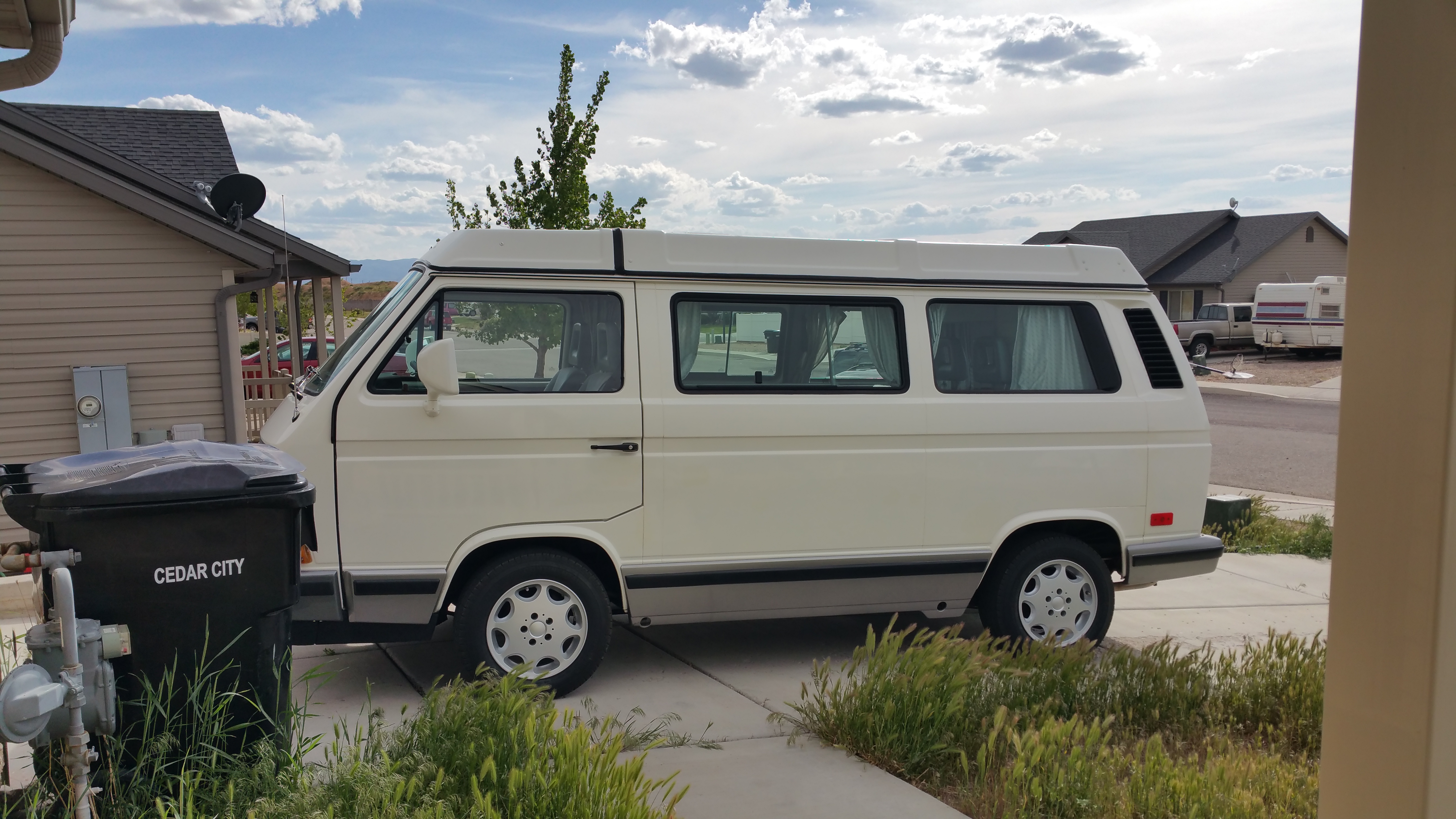 Parents are living with us currently too...Clean white 1998 Corvette (automatic blegh), and 2000 Chev pickup