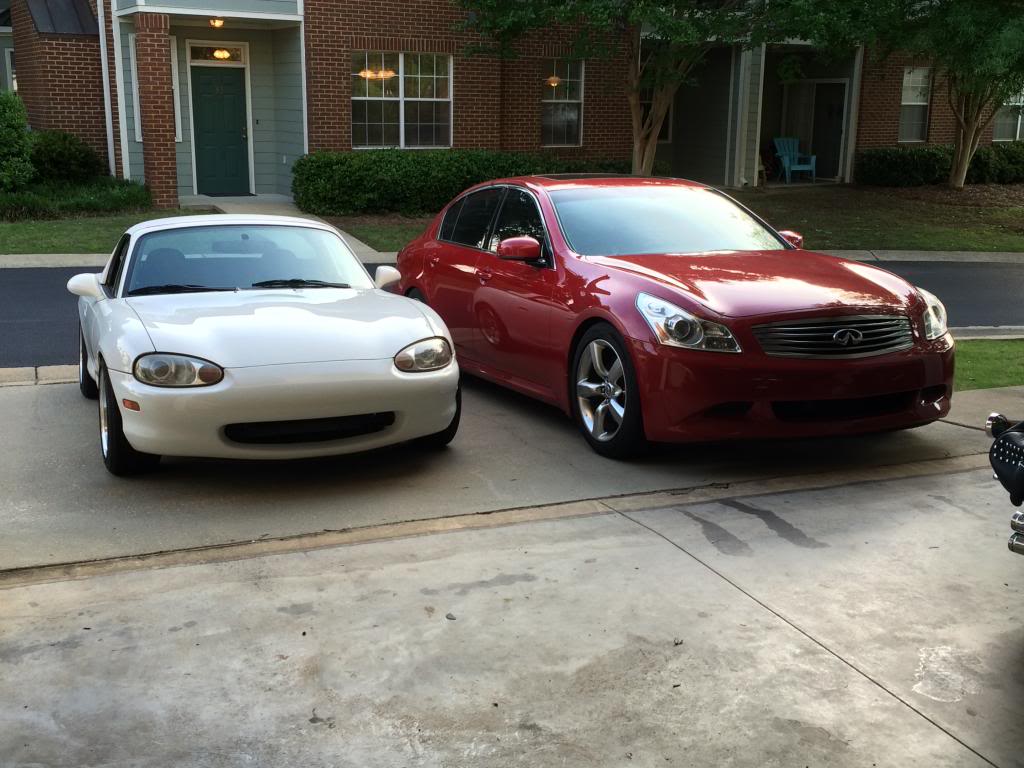 Our two Miatae compete for the one spot in the garage. The NC is my wife's daily, and the NA is just a weekend toy.