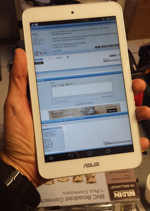 Really, the thing that most bothered me was that the 10" units all had a really thick border around the screen, making the device a lot larger than it needed to be. If anything, I'd expect that border to be proportionally larger on the 8" units, yet the opposite was true. The one exception here was the iPad Air, which was actually quite nice, but $500 seemed a tad excessive.