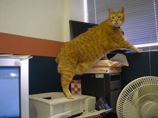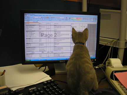 We have lots of office help. The grey kitten, Hank, and the Orange fat cat, Rocky, are mine.