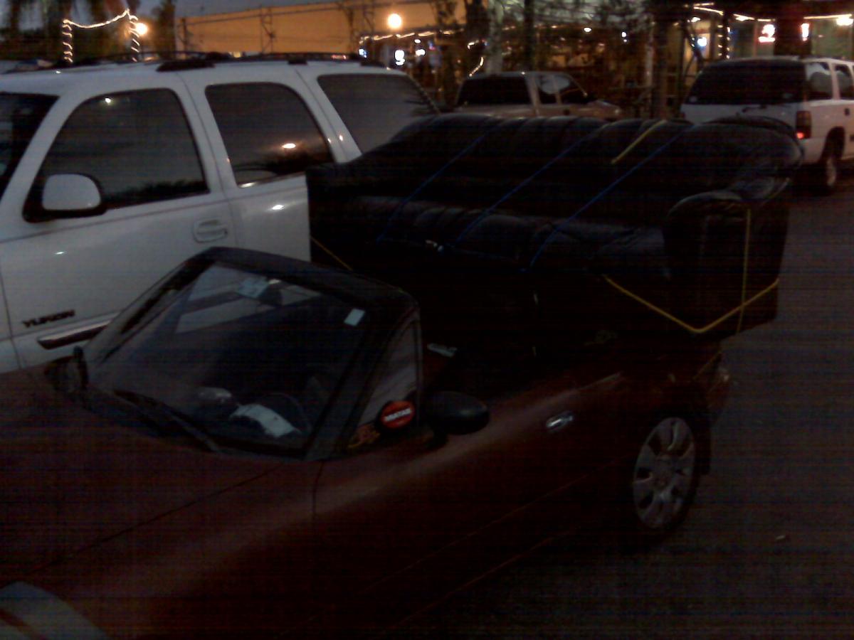Not a Miata, but this past weekend I was at Menards and there was this older guy who wheeled out 40 2x4's on the flat cart. I was amazed when I saw him pull up to a Satrun and start loading them in. When I drove by in the parking lot, he was just sliding #39 and 40 into the car.