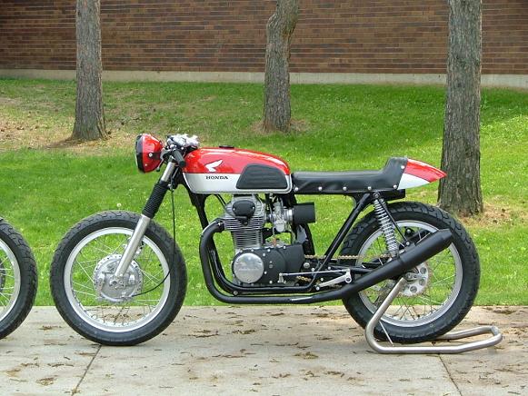 If you are into caffe style bikes I think a 80's CB350 or CB500 would be a great starter bike. They are quick, handle well, easy to maintain, and have no plastic to tear up if your do drop it. The best part is with a little time and money you can have this!