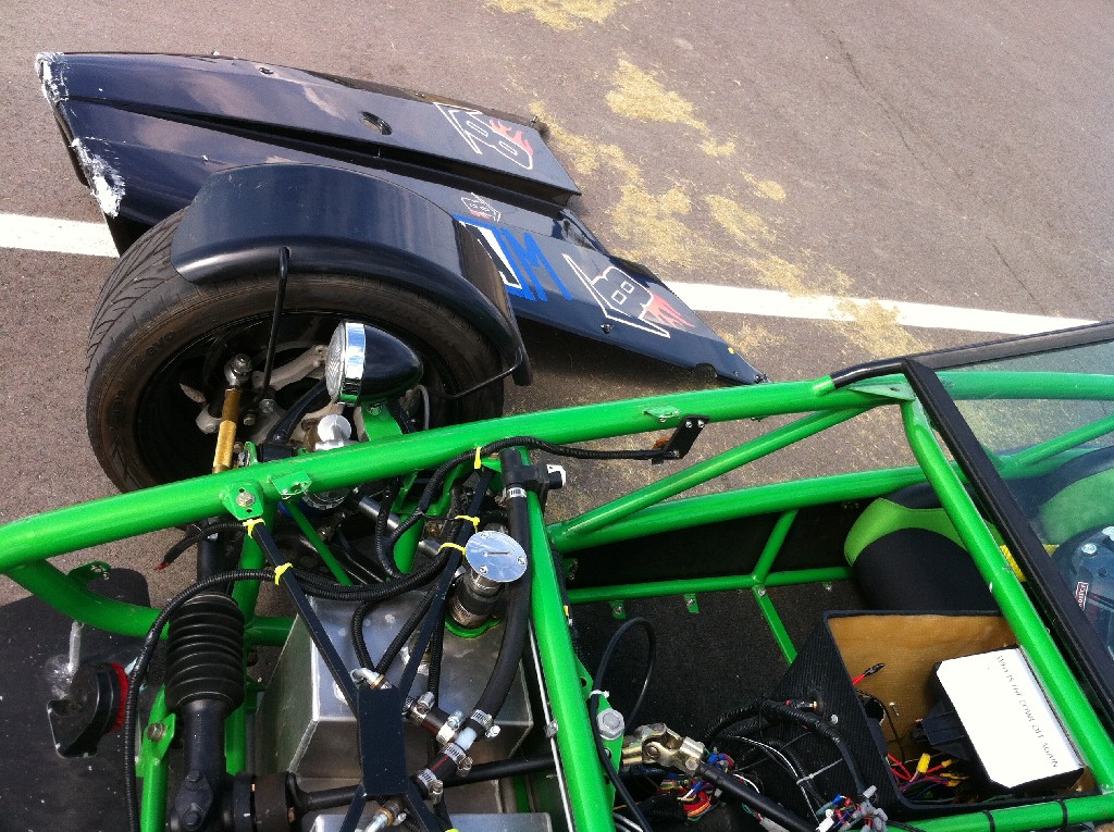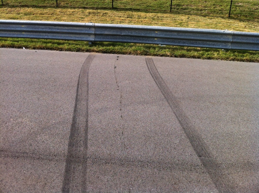 Hydraulic brake pressure switch for the lights failed at a very bad time. I'm not gonna lie I might have tagged the barrier anyway, just not as hard. No injuries, no frame damage, and other than the root cause of the brakes just cosmetic.