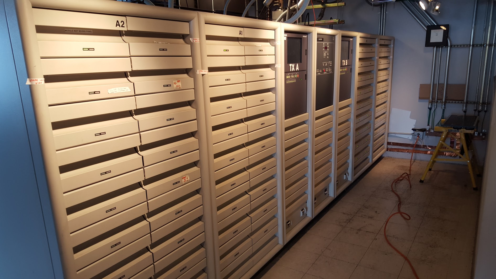At the TV station, our main transmitter up on Empire is a Harris Platinum, which was a first-generation solid state VHF rig purchased in great haste immediately after 9/11, following the destruction of our main transmitter, and the death of our transmitter chief, along with the rest of 1 WTC.
