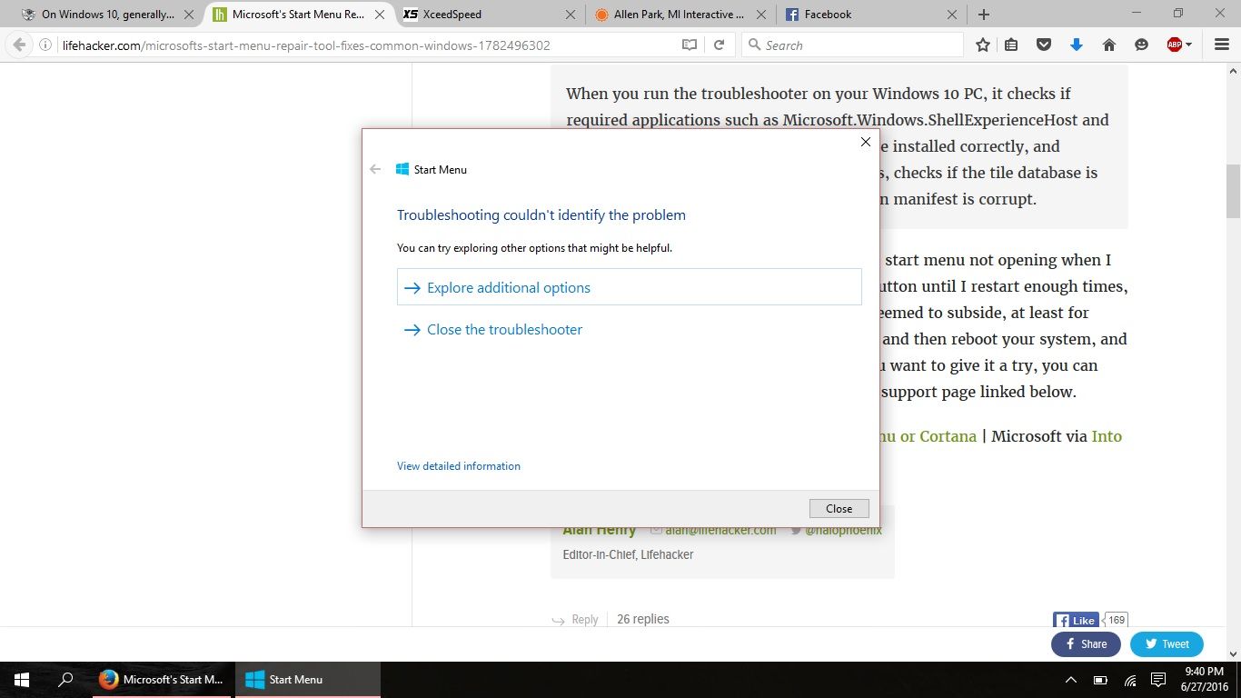 Minor discovery regarding "****, my start menu doesn't work now"...