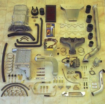 it comes from the UK and was a factory option a few years ago - this car has the intercooler in front of the radiator - so I presume it to be the phase 11 kit - the ecu has also got a perfect power piggybackto control fueling and so on - and the fifth injector - pre throttle body