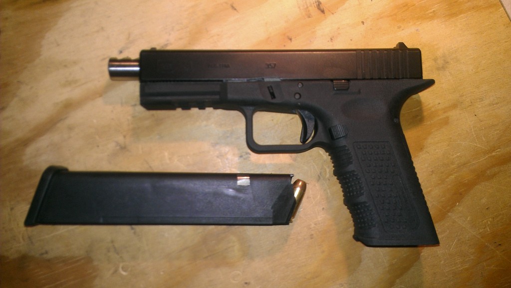 Just finished putting this little project together with used bits and pieces. LWD Timberwolf frame, OEM Glock slide, .40 S&W extended compensated barrel, Glock bits except for LWD 5# connector and smooth trigger, 22-rd magazine. Should be a fun blaster. No idea why I need it. May keep it if it's fun, but will probably sell it.