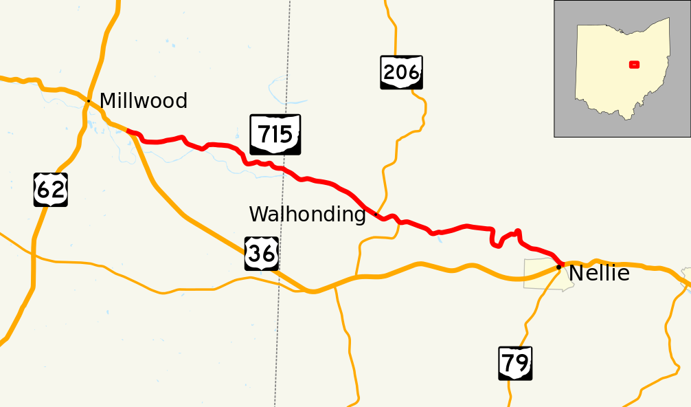 State route 715 is my favorite few miles of road. Its success as my favorite road is mostly attributed to U.S. 36. Because of U.S. 36, it's easy to find and get to, but also because of U.S. 36, no one travels along Ohio 715. You see, OH-715 is a twisty road which dead ends into the generally straight U.S. 36 at both ends, with only a single T intersection along its length.