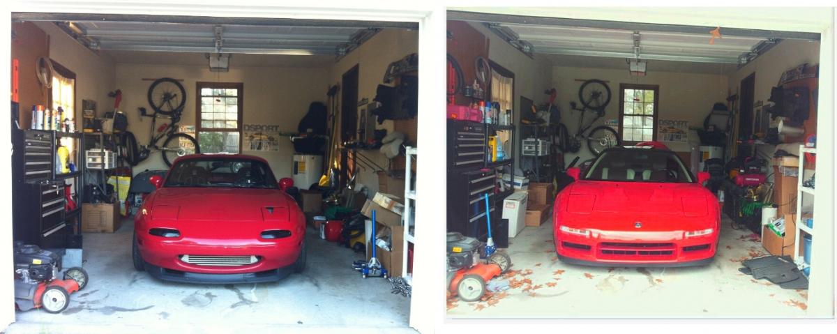 The Miata's outside, but is under a cover. You wouldn't buy an NSX and leave it outside, would you?