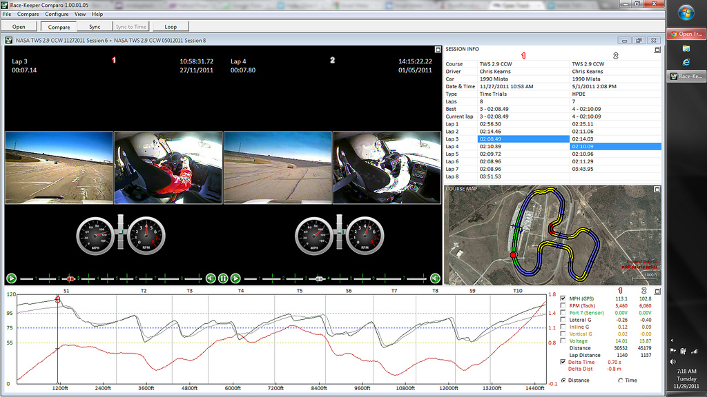 Sunday before lunch - good game of chase with the 711 TTE Miata that was 2nd in points with NASA TX. The first of the 2:08:49's was in this session.