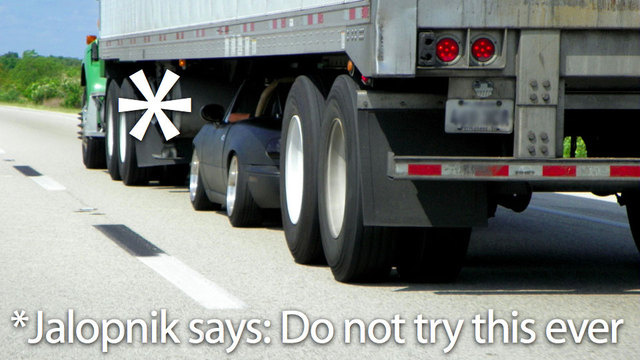 I feel like he was probably pissed that some idiot drove their miata underneath his truck while he'd driving 70mph down the highway and probably wasn't all that concerned about someone taking a picture.