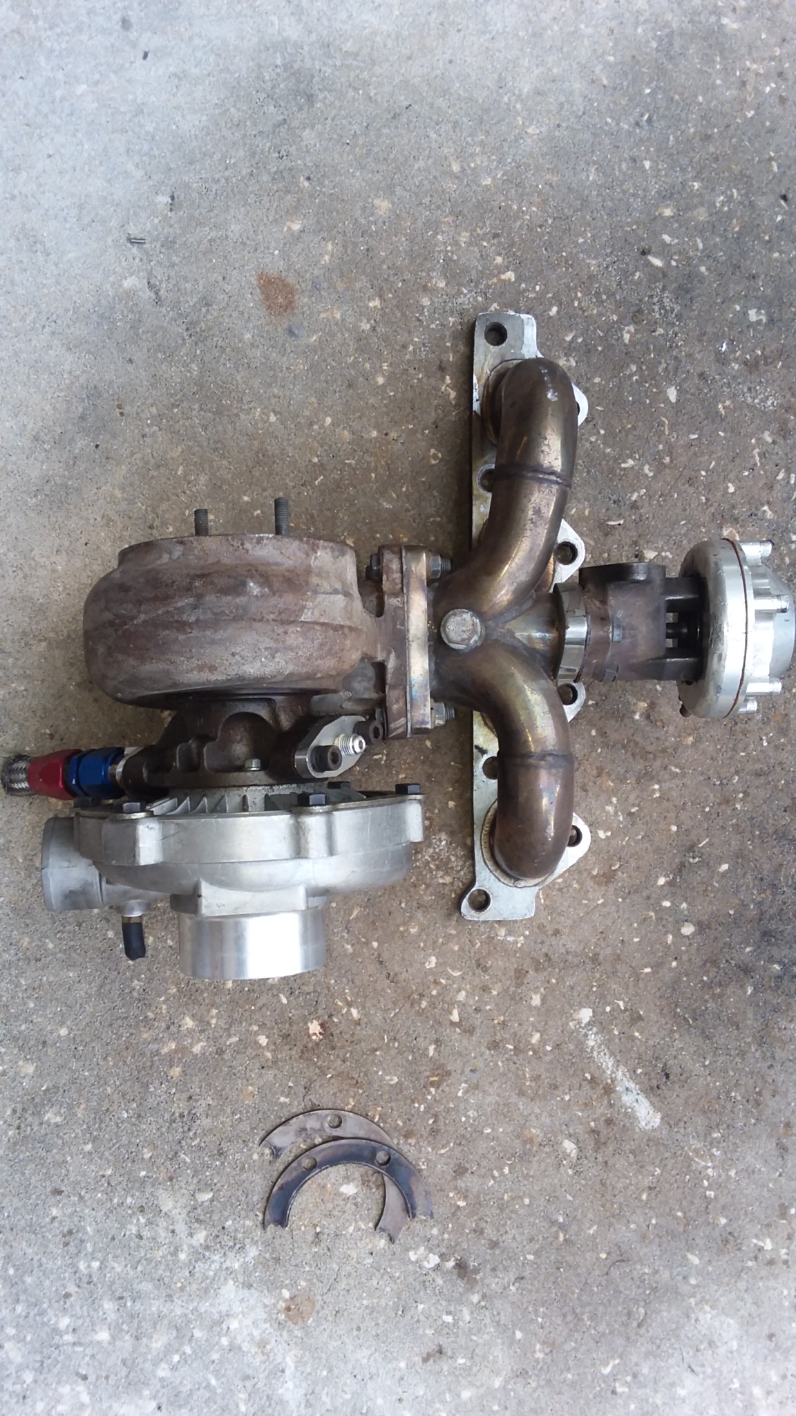 Turbo XS T3 turbo that spins freely, Honda manifold of unknown origin, Turbosmart 35 wastegate - all for $100