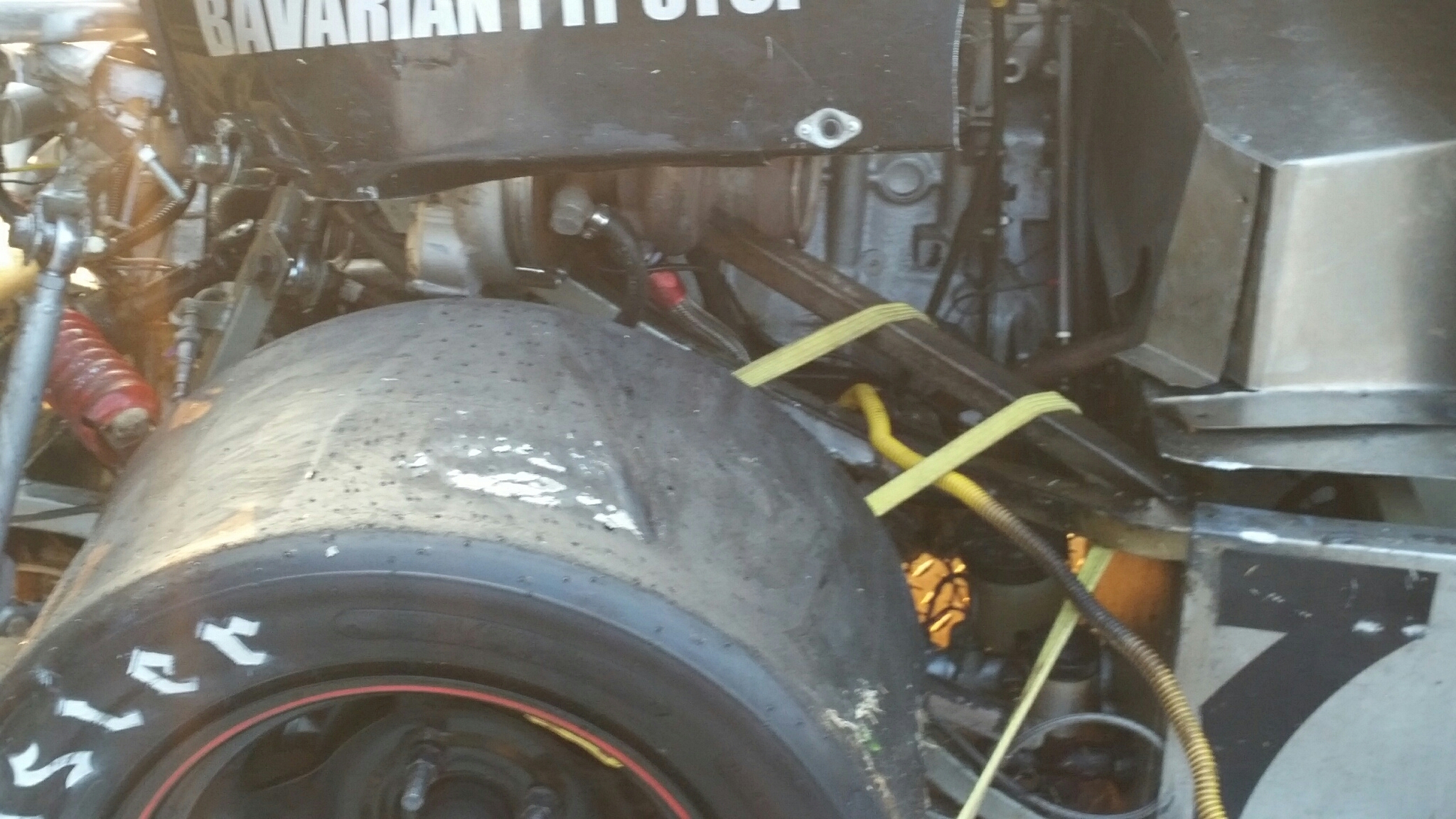 When I yelled to the driver over the fence when he was walking over to pick up his wheel I asked if it was a hub failure and he said "no it looks like a rotor."