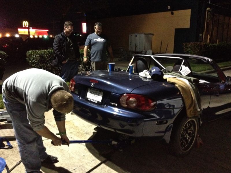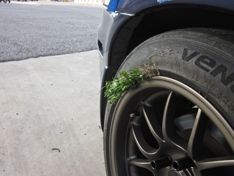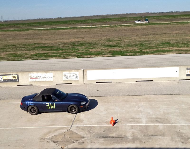 The spec miata suspension is not the most friendly suspension to very low cars. When I started out the day I was on the bumpstops almost the whole time in the rear, but the 3/4" rear raise really helped that. This was a great ride height testing day and I think now that I have that figured out, I should probably get an alignment. I just made sure I had 0ish toe front/rear and brought it out.