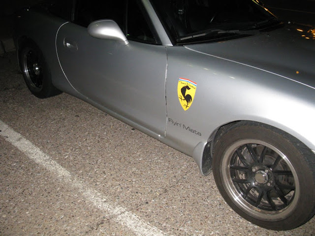 Let's see if I can make this work (at least the 2nd time around). These were taken last night by Mike from the AZMazda Club. This first is the Team Voodoo emblem. It shows that while I drive a Miata, I have a big, prancing **** (well, on the side of the car anyways ).