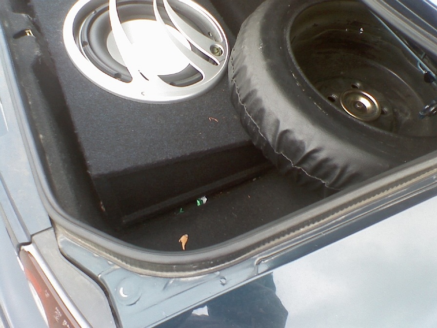 I had to sacrafice the spare tire to get the box to fit, but I fabbed up a 1.18 cubic foot box, threw a 3" diamerter aero port 17 inches into the box, and fired the sub forward with the port firing to the pass side. Tuned to 29/30hz.