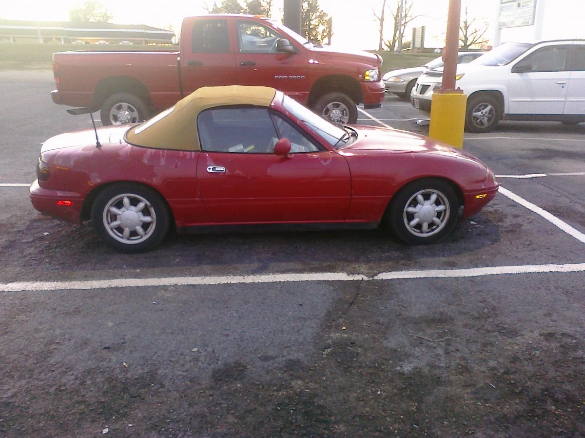 This is my DD Miata. Picked it up with almost 170K miles. Put coilovers on it and ordered OEM cupholder for center console, also replaced the passenger side window regulator. Possible other small stuff and rims on the way, but that is about it. Got it for $1000 from a member of the family as a second car. Now I am saving for an NB. That will be fully built.