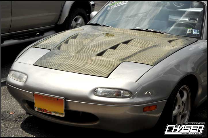 Ok, I have the first CF hood installed on my 93 Miata. I dropped the car off today to them, and let them do the work. They got it lined up, and took it out for a photo shoot. Some of you may have seen this, some maybe haven't...without further adu...