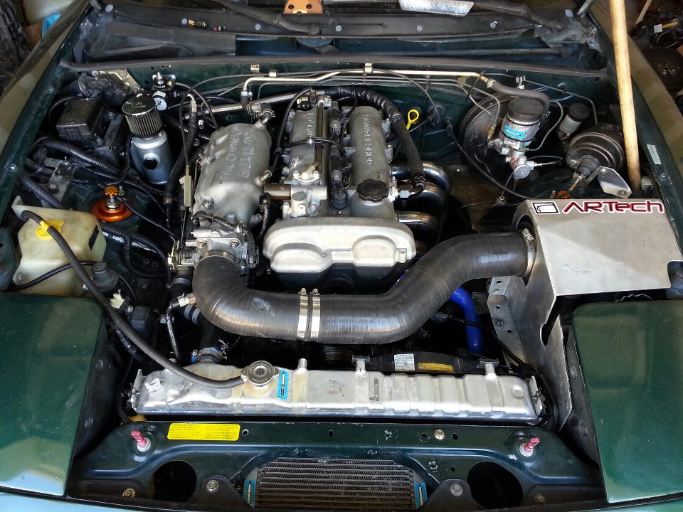 Baby Jesus cries over how my engine bay looks. I changed the oil earlier and had to stand there and look at it for a while with a pitiful, ashamed look on my face. I really need to get on the ball with the rebuild/build 2.1 so I can get that mess back to a clean state. When I do the build, I will also try to have the car ready to paint so I can do the engine bay while I'm at it.