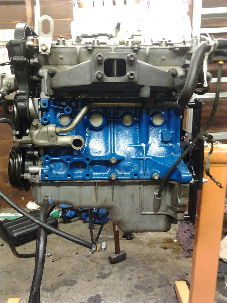 I was able to put some more time in today and got most of the lower end put together. New rear main seal and gasket, crank seal, oil pump gasket, cooler gasket, new water pump, and oil pan installed.