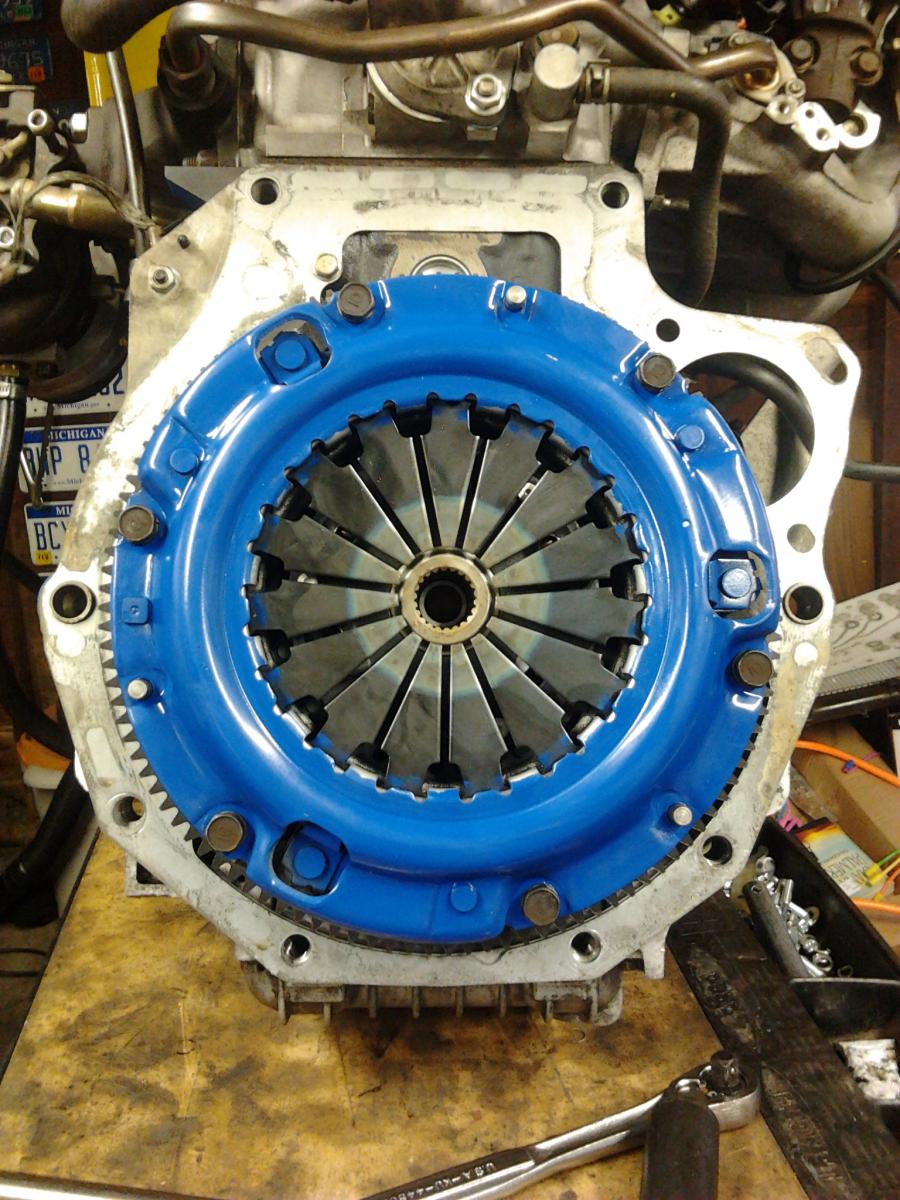 Progress... I got an F1 stage two carbonized kevlar clutch and PP. Should hold up to 250ftlb of torque, it looks like a quality product but the clutch material isn't very thick. Will probably last 10-15k miles with the type of driving I do, but I only put on about 4-5k miles a year.