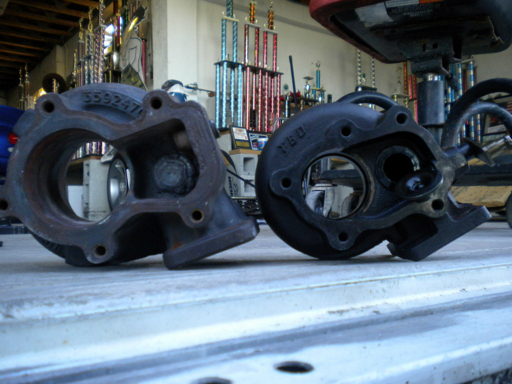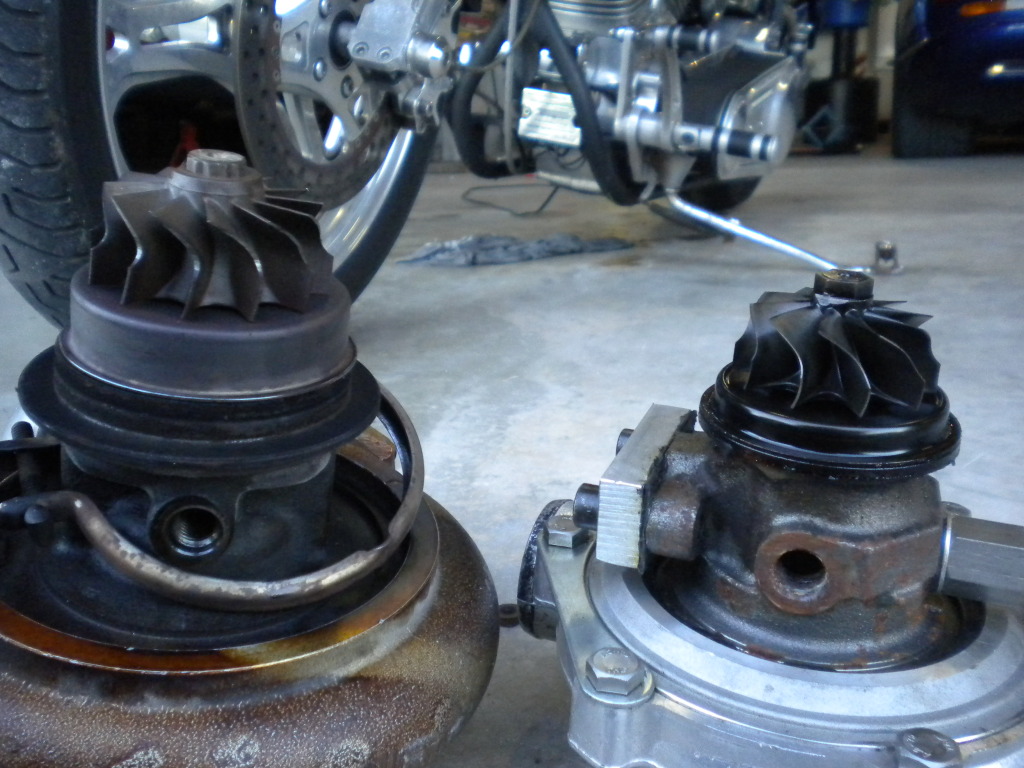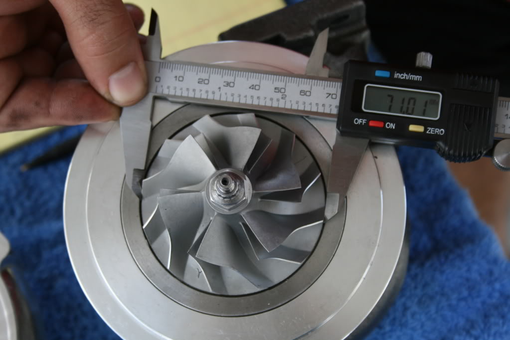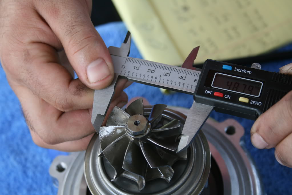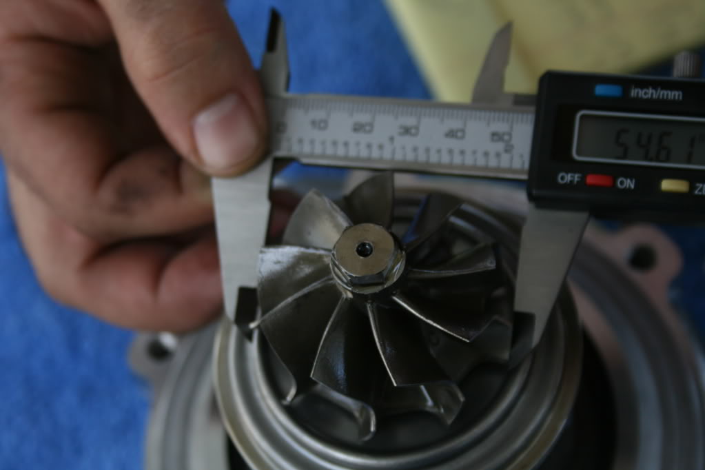 I know off the top of my head the specs are 54mm/58mm and a 9cm^2 turbine housing.