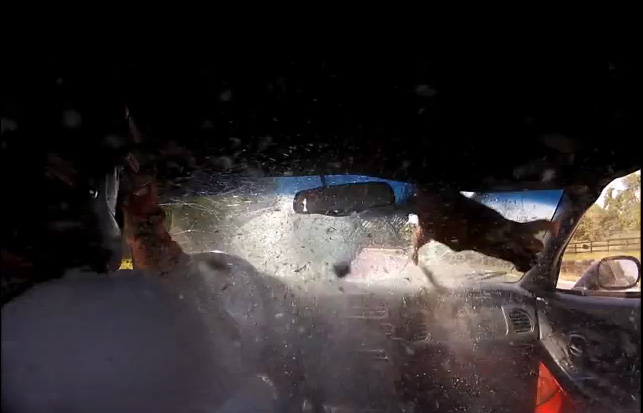 Here's another good reason for using your helmet visor! I thought he did a good job covering his eyes at the last moment