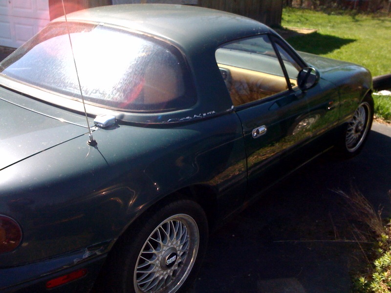 Last month I came across this sweet deal in NJ. A 1991 BRG LE with 95,000 miles (and hardtop) for $1600.00. She had been sitting for a few years in the driveway and had paint issues. Apparently the previous owners wife hit a deer or two and when they repaired the body they used clear coat....well, the clear was flaking off now in spots. A spot of rocker rust, but other than that she runs good, borla exhaust. The shocks are shot and the springs are rusted through on both rears, so I am looking to get replacements. (Side note: Bought a replacement set of AGX from