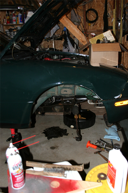 Removed the suspension to install a fresh set of a-arms and a set of Bilsteins from a 1999 sport (hard).