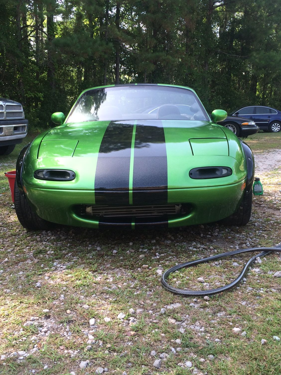 Well, here we go. I've been gathering information from this site for years and have finally decided to jump into the fray. My name is Janna. I live over in Newport, North Carolina. I own a 1992 turbocharged Miata. This car previously belonged to my mother. When she passed away in 2011, she left her beloved little car to me. Since that time she has gone from a run of the mill stock Miata to the car you see in my current pictures. Through a deployment to Afghanistan and an unreliable paint guy, she is finally back together enough to be roadworthy again. My husband and I are still working on a few things and hope to get her to the dyno next week. Stay safe out there everyone.