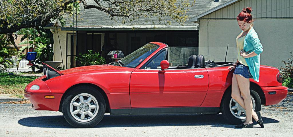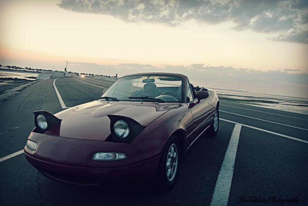 Hai, My names Alexis and I am a first time Miata owner. I just purchased my red 1990 Miata. I was skeptical because I had a really specific car taste but have had a change of heart and fell in love with it. She's all stock at the moment, got her quite clean for the right price. Now I'm saving up to "stance" her out the way I want to.