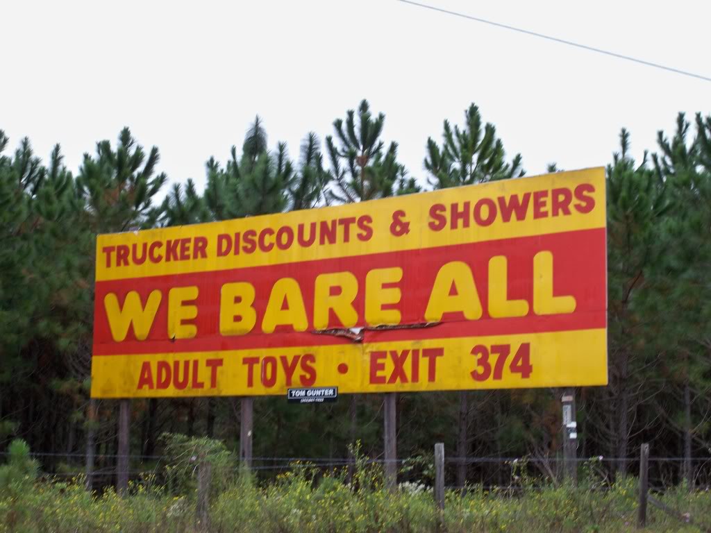 From my years at UF, I recall there being some particular strip joint in the Ocala-ish area which had billboards leading up to it for probably a hundred miles in either direction on I-75. The thing which I recall most is that they tended to advertize things like "Truckers Welcome!" and "Truck Parking!"